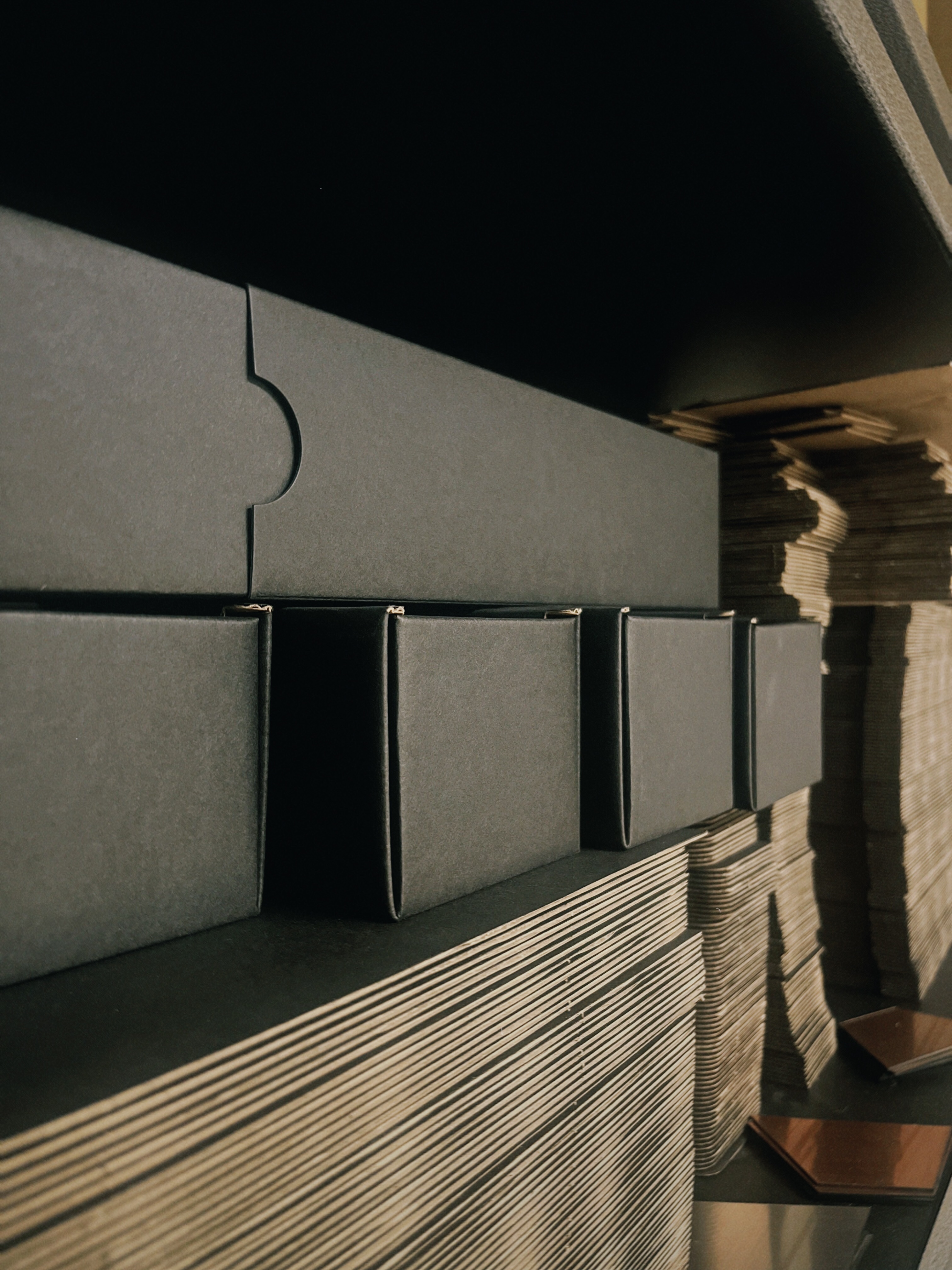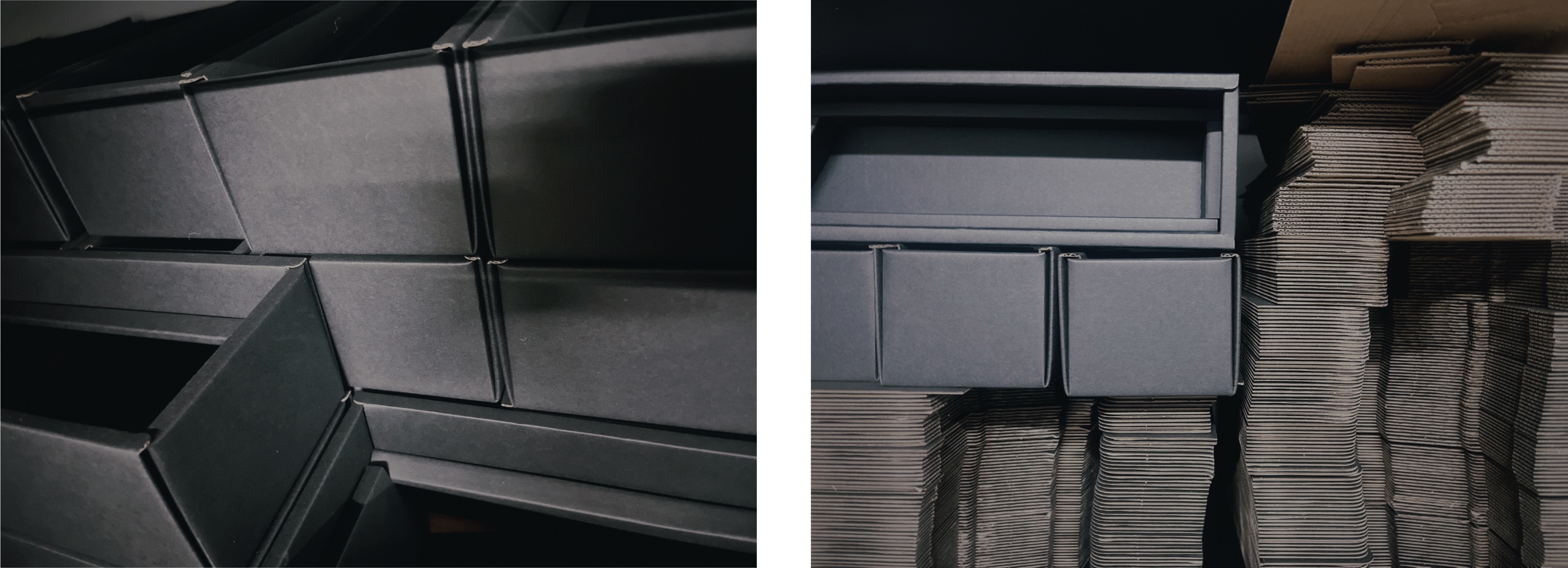 在包裝出貨時也都是由re.O把關,將平面浪紙沿凹痕自然彎折就成為了現在看到質感包裝,沒有任何訂書針以及膠帶等設計讓回收可沿原凹痕折回平面,不佔空間的同時讓回收更簡單,讓原生漿資源更好重複利用